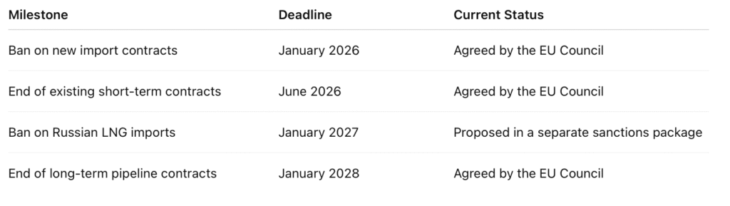 Methane Regulation: Requires importers to prove their gas meets strict methane emission monitoring and verification standards “at the producer level.” This is nearly impossible for the U.S., where gas from multiple basins mixes in a vast pipeline network, making producer-level traceability infeasible. The uncertainty has already stalled contract negotiations.